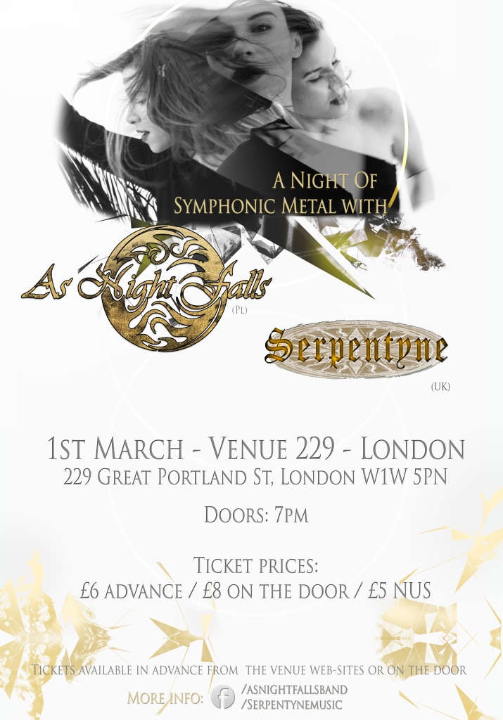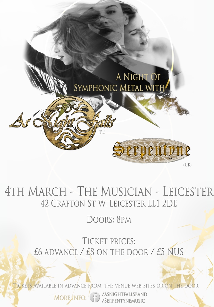 British Symphonic Rock/Folk band Serpentyne are now confirmed as support for As Night Falls for the 1st March London and 4th March Leicester shows !!!! Updated flyer/promo coming soon........